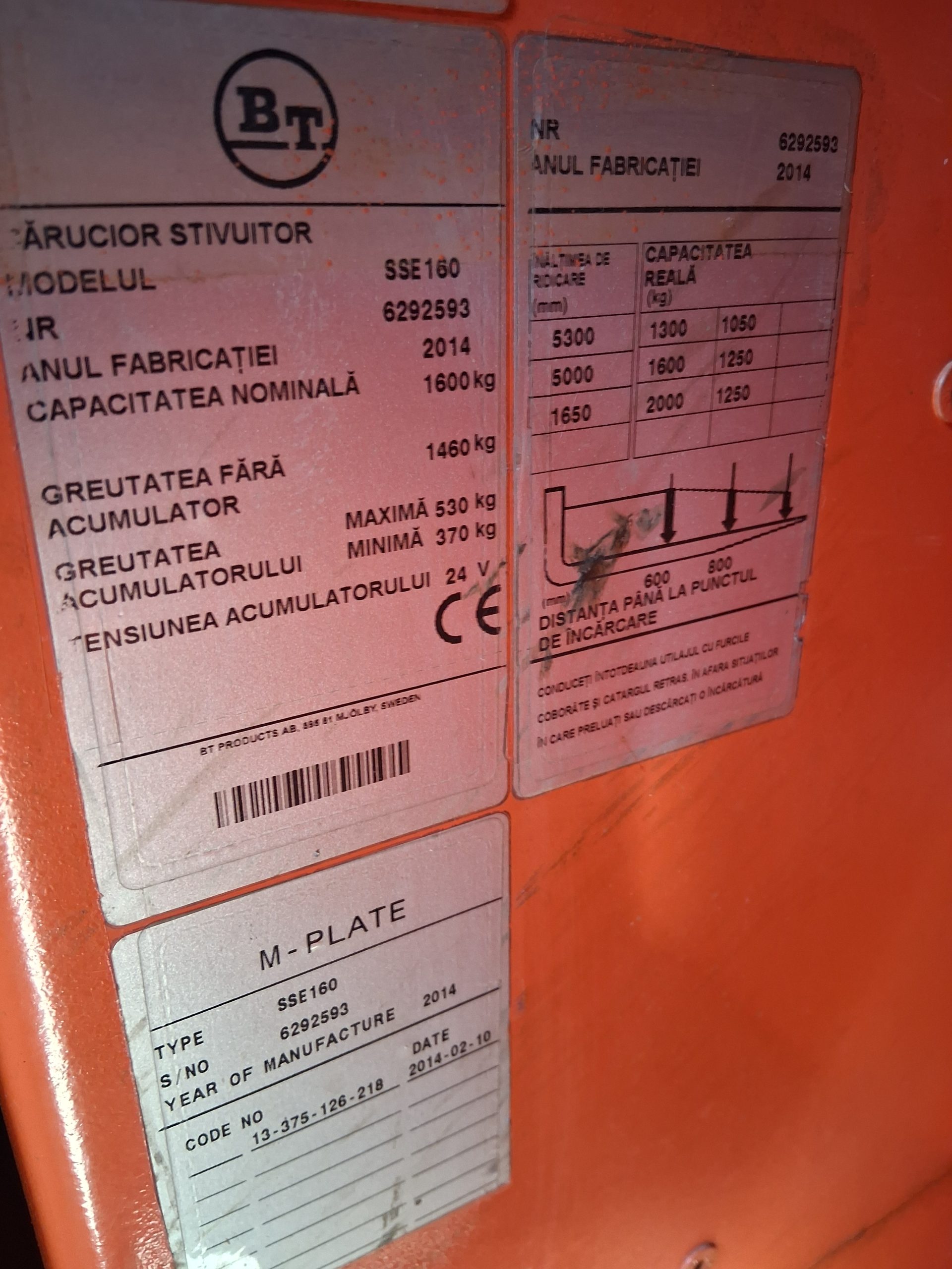 Transpalete electrica Toyota SSE160 6292593 2014 Q=1600Kg; H=5300mm